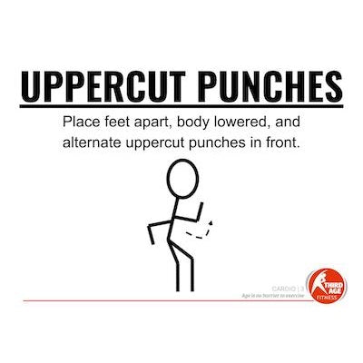 Featured stations: Power Walk, Star Jumps, Uppercut Punches, Hop/Walk, Bunny Jumps, Knee Lifts, Cross Punches, Walk & Lift