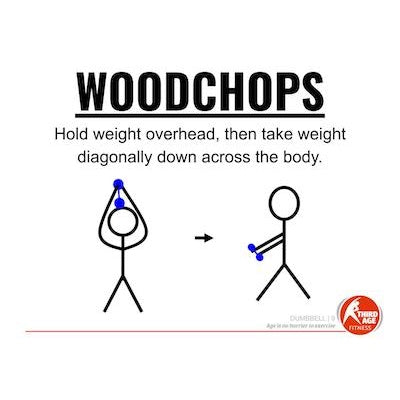 Included exercises: Woodchops, Overhead Hold, Reverse Fly, Forward Arm Raise, Calf Raise, Blade Squeeze, Elbow Raise, and 1-Leg Deadlift.