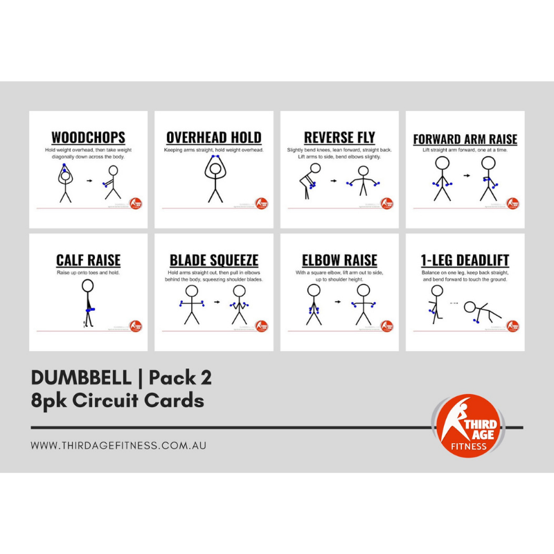 Expand your strength training repertoire with Dumbbell Circuit Card Pack #2, thoughtfully created for senior and older adult fitness classes. This pack contains eight durable, laminated cards highlighting exercises that enhance muscle balance, coordination, and overall strength.