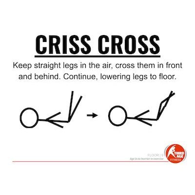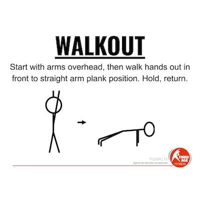 Floor circuit stations include: Criss Cross, Walkout, 100s, Mountain Climbers, Single Leg Lower, Side Plank, V-Sit, and Reverse Crunch.