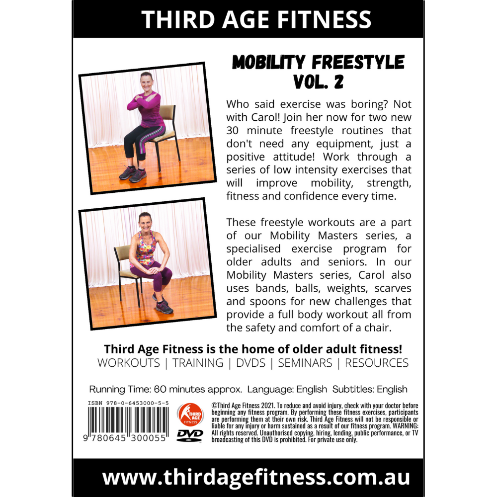 Volume 2 introduces different flows and fresh patterns to keep your mobility journey engaging and effective. Carol brings gentle variety to every session, making it fun whether you’re exercising solo or in a group setting.