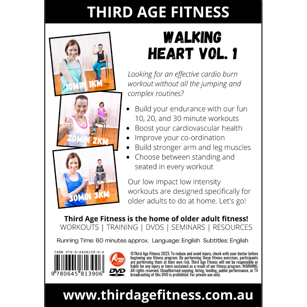Walking Heart Vol 1 delivers safe, low-intensity walking routines that get you moving at your own pace. Carol and Trudi guide you through simple, encouraging sessions that help boost cardiovascular health, improve mobility, and gently build strength—without jumping or complicated moves.